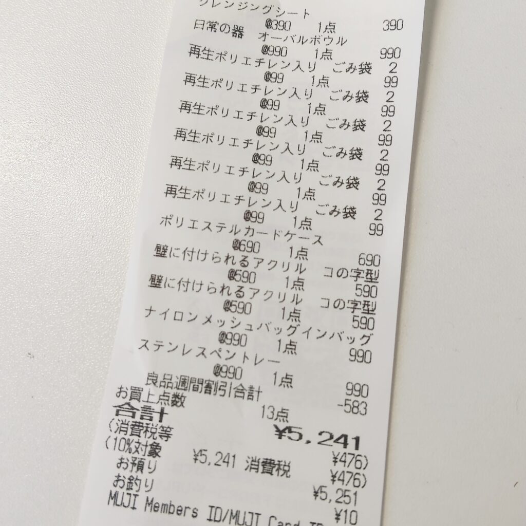 もっと行くかとおもったけど、さすが無印良品。