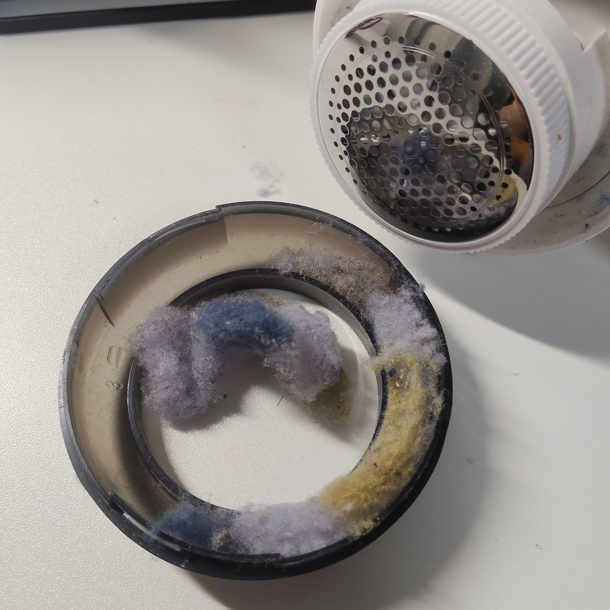まるでこたつソックス、めっちゃあったかいのにすぐ毛玉だらけになるの困ってたけど、ちょっとチュイチュイ~ンっと滑らせるだけでこんなにきれいに…買いなおさないとな~と考えていたけど、これならまだまだ使える!!